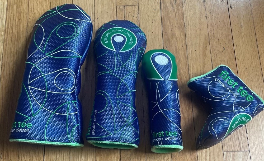 Enjoy a full set of First Tee - Greater Detroit inspired headcovers made by Hatch Golf Company. Hatch covers use marine grade materials that are made to weather the elements. This headcover set is one of a kind.